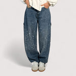 ✔️ Jedinstven, upečatljiv izgled Kombinacija Balloon-fita, Carpenter detalja i glitera (šljokica) stvara traperice koje odmah upadaju u oči i naglašavaju vaš osobni stil.