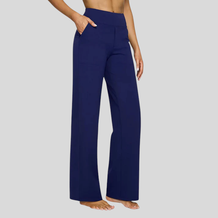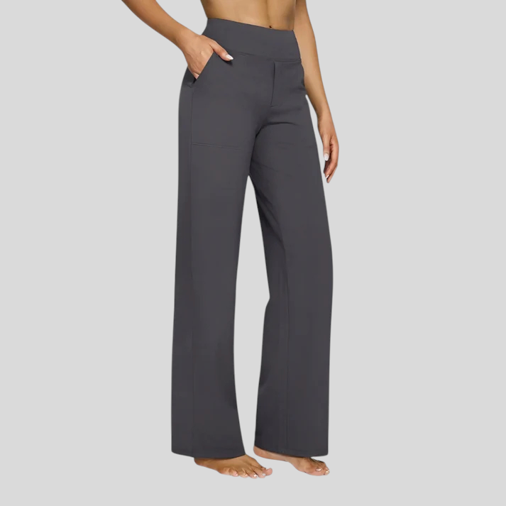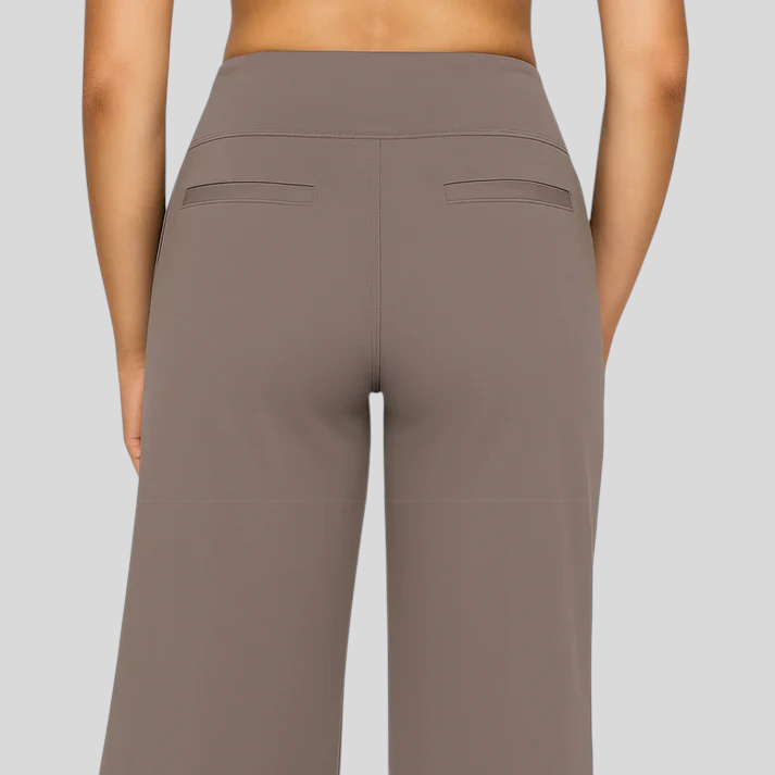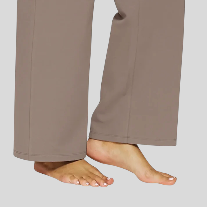 Ove hlače dizajnirane su kako bi pružile maksimalnu slobodu kretanja uz moderan i profinjen izgled. Mekani i rastezljivi materijal savršeno se prilagođava tijelu bez stezanja, osiguravajući udobnost tijekom cijelog dana. Visoki struk daje nježnu potporu, dok široki kroj stvara elegantan i fluidan pad. Idealne su za trening, opuštanje ili svakodnevne aktivnosti u potpunoj udobnosti.
