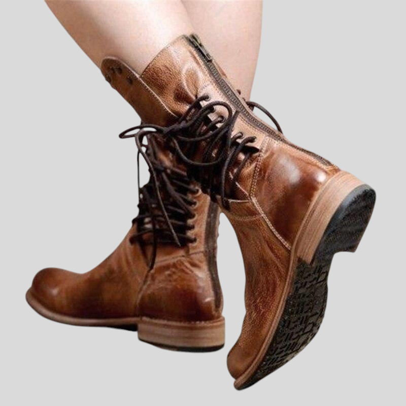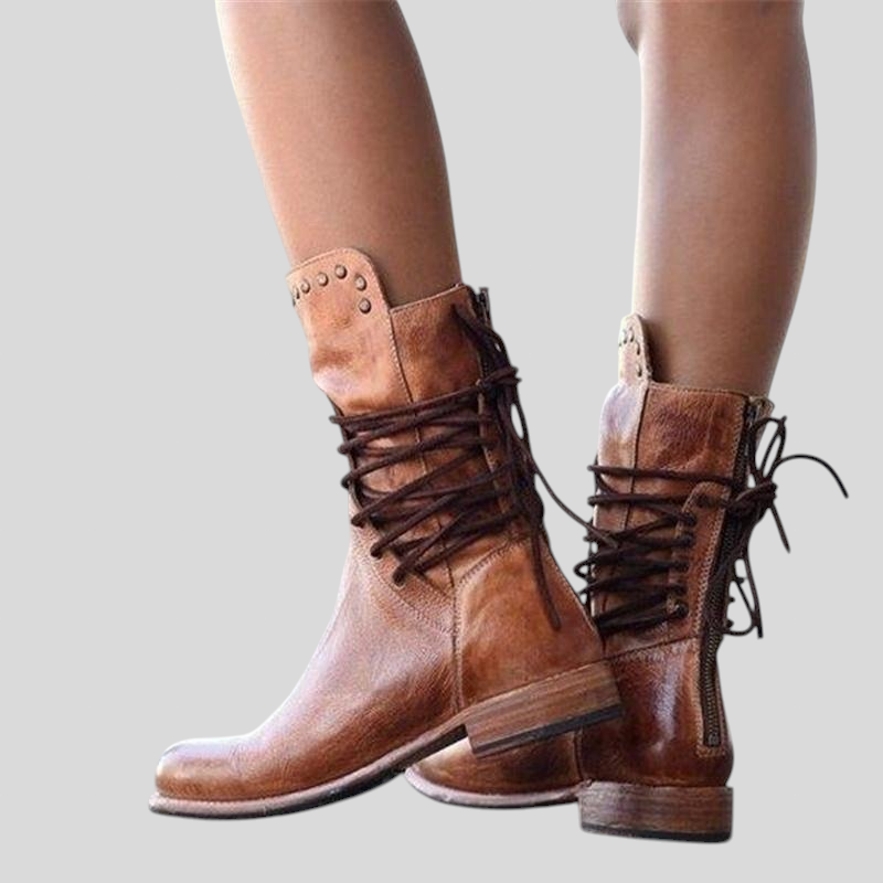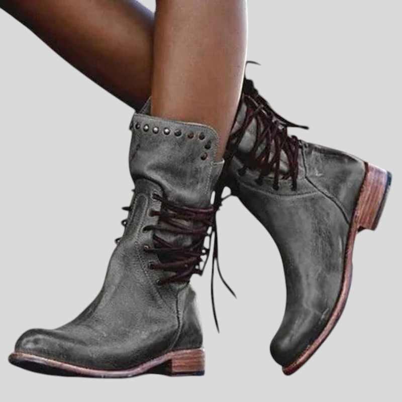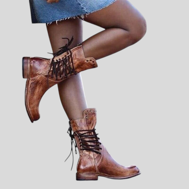 Ove čizme savršen su spoj elegancije i stava. S ručno izrađenim detaljima i svestranim dizajnom, lako se uklapaju u različite stilove – od ležernih kombinacija do sofisticiranijih outfita. Srednje visok dizajn s vezicama omogućuje udobno prilagođavanje, dok čvrst potplat osigurava trajnost i stabilnost pri svakom koraku.