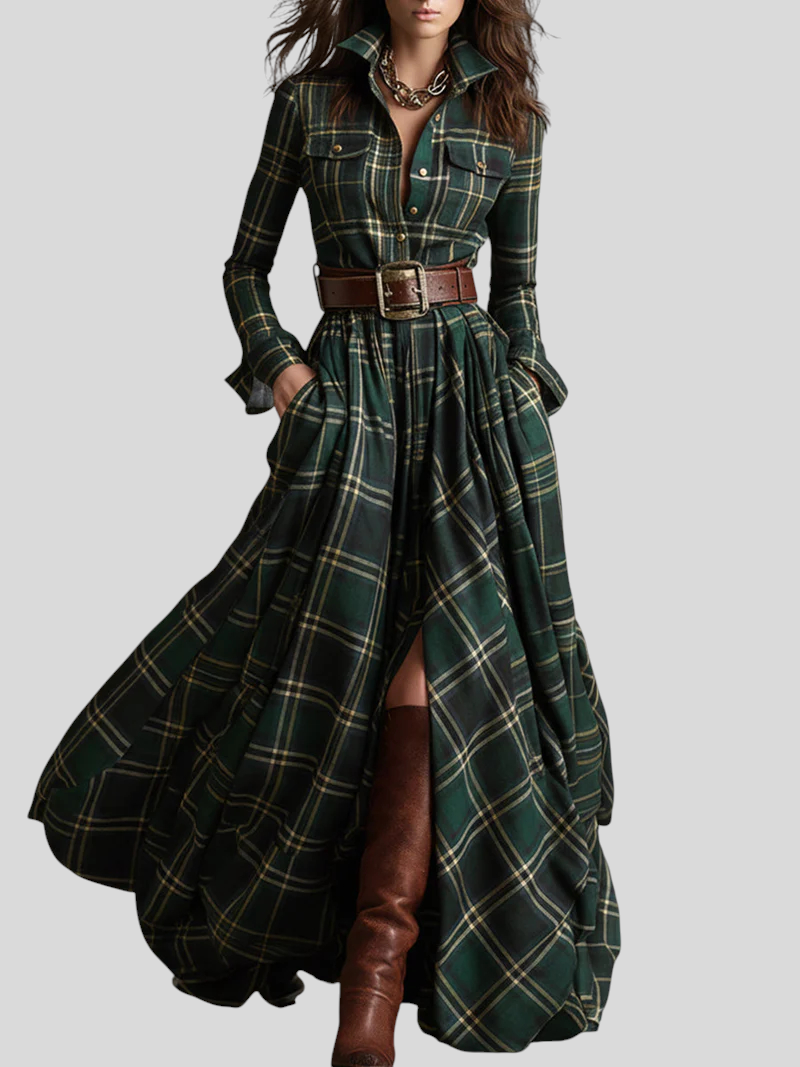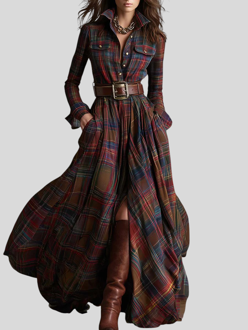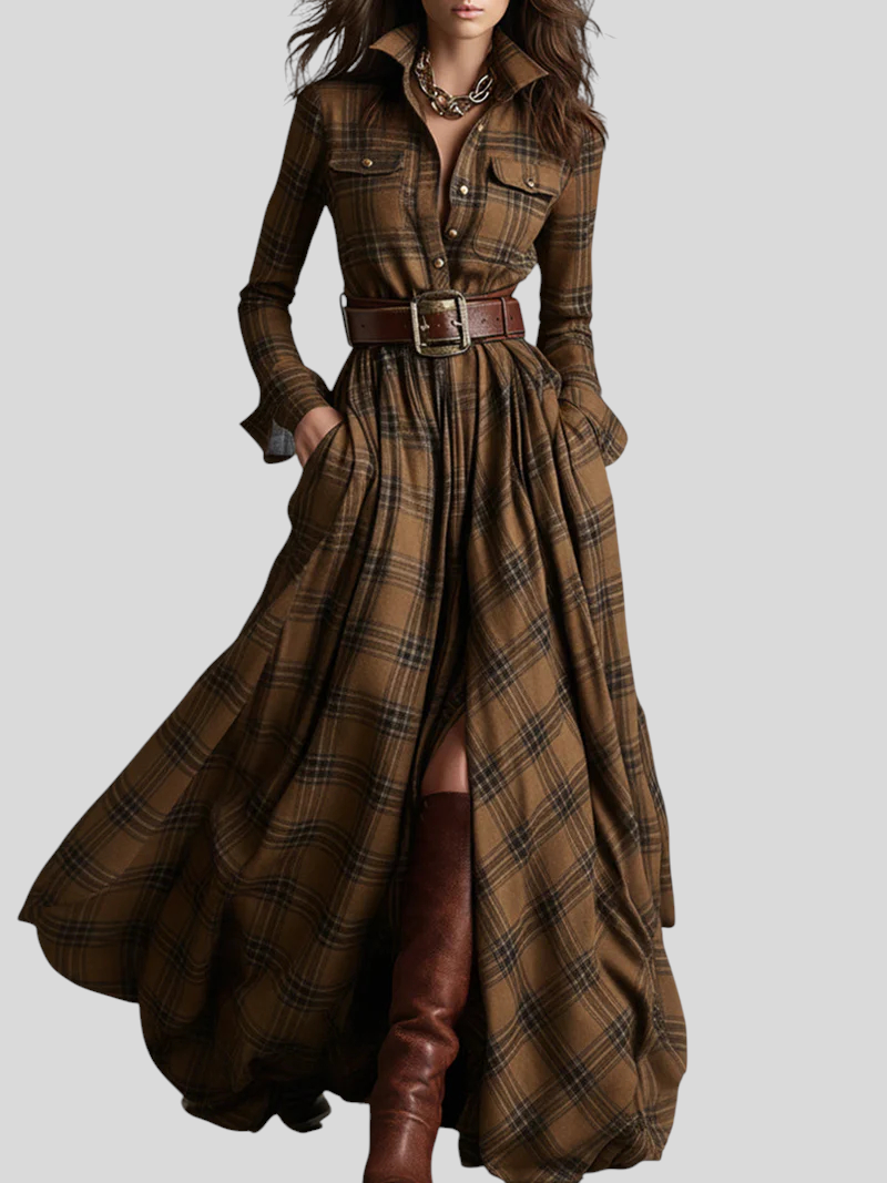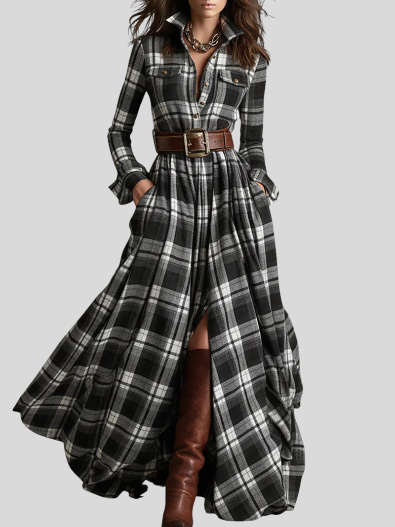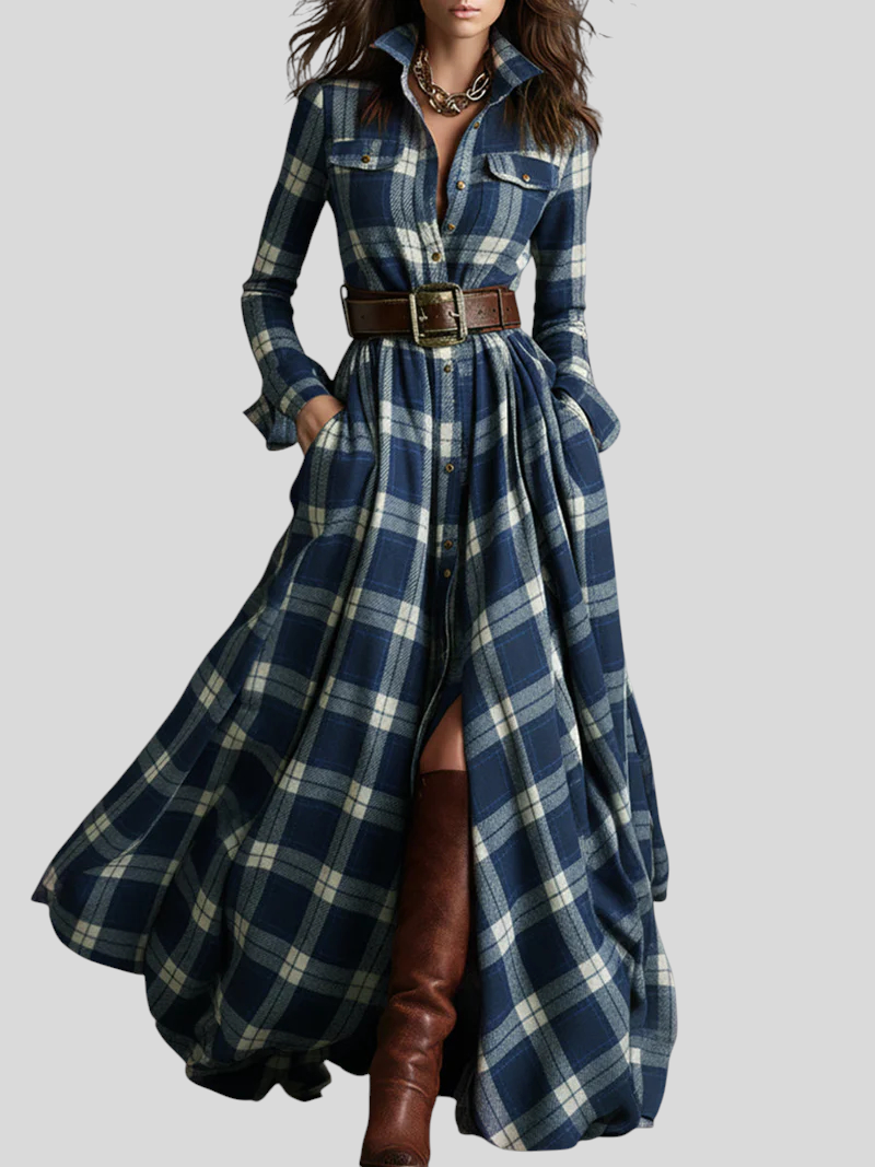 Karirana Maxi Košulja-Haljina – Bezvremenska Elegancija S Pokretom