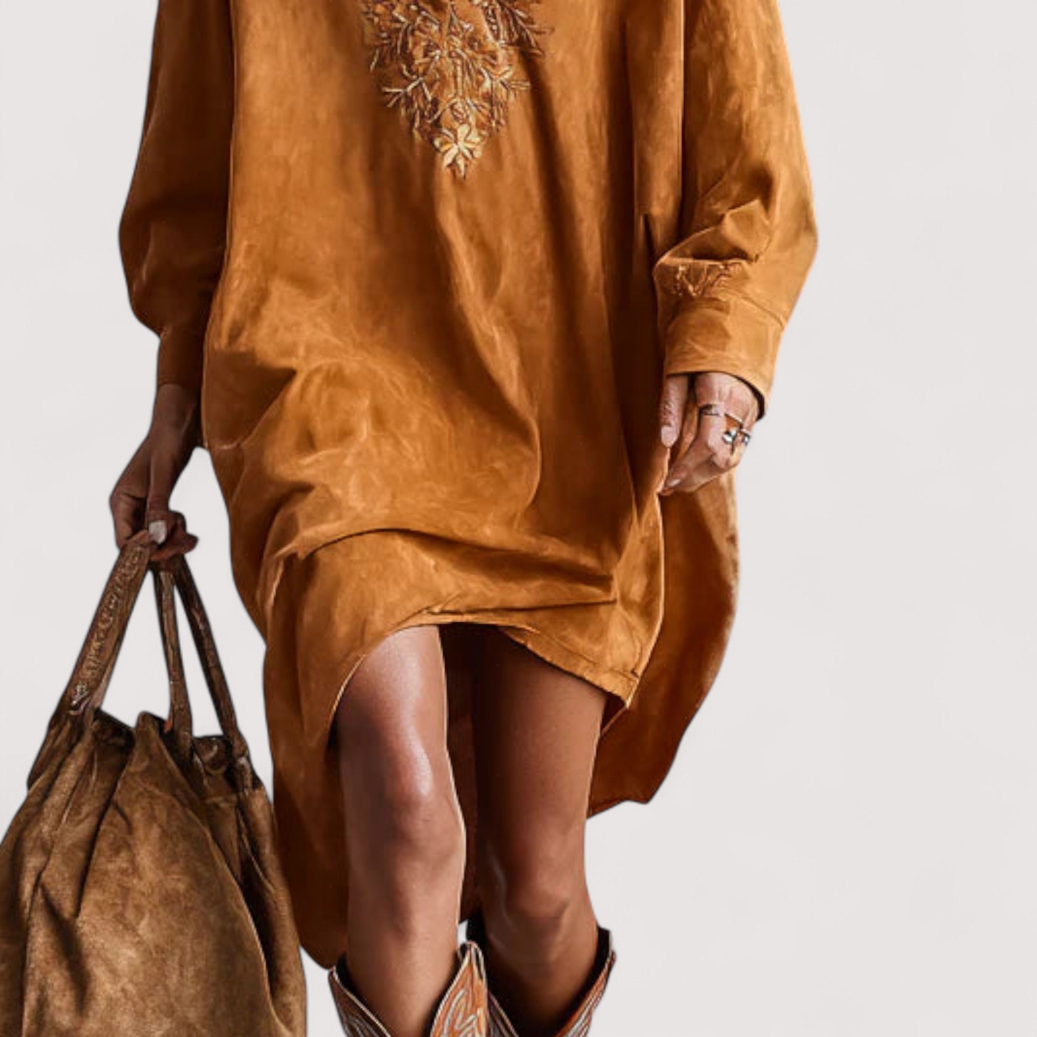 Isola | Opuštena midi haljina s ovratnikom na V-izrez i dugim rukavima s printom