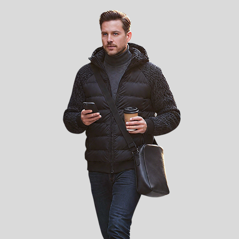 Podstavljena Muška Jakna Visoke Izvedbe S Kapuljačom I Modernim Dizajnom