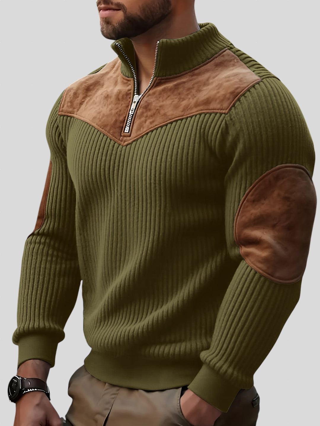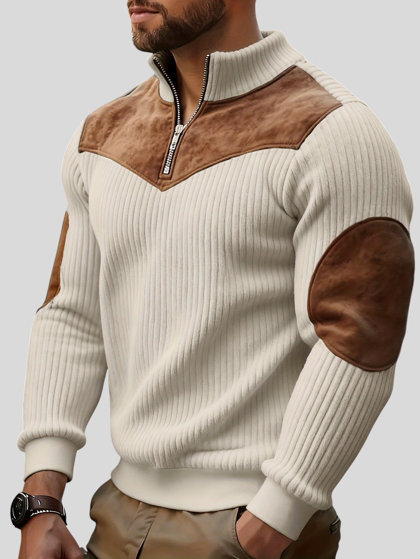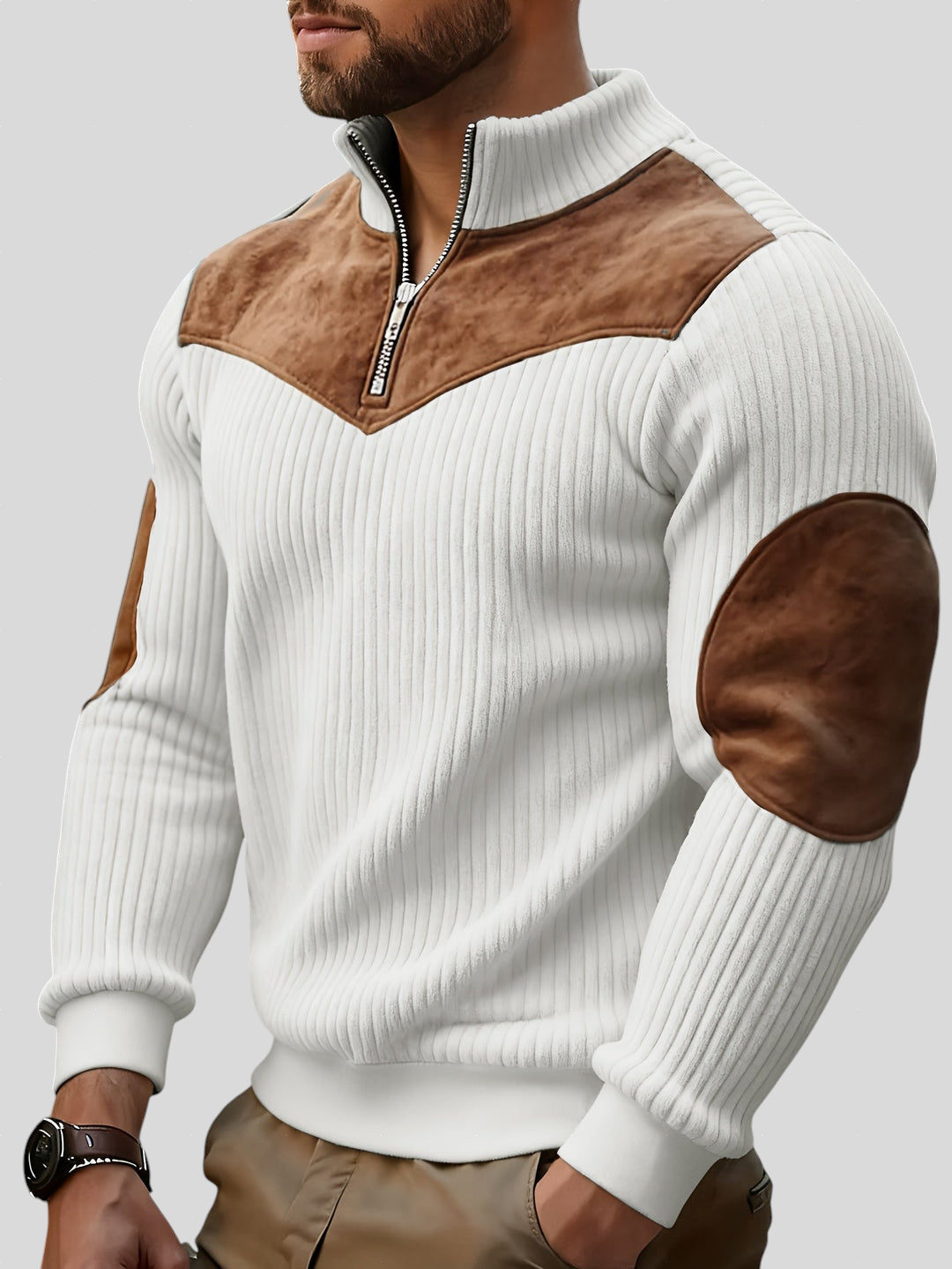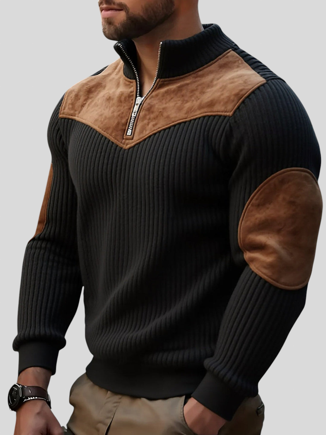 Ovaj pulover spaja moderan stil i funkcionalnost, donoseći praktičnost poluzipa i profinjenost pletenog dizajna. Kontrastni detalji daju dodatnu osobnost komadu, čineći ga savršenim izborom za muškarce koji traže udobnost spojenu s elegancijom. Idealan je i za svakodnevne kombinacije i za ležerne trenutke sa stilom.
