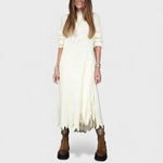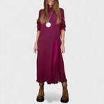 Ova haljina spaja udobnost, stil i osobnost u jednom komadu. Mekani pletivni materijal pruža ležeran i ugodan pad, dok diskretan prednji prorez dodaje pokret i moderan naglasak. Unutarnji sloj daje haljini lakoću i profinjen završetak, stvarajući elegantan izgled bez napora. Savršena za dame koje vole izgledati dotjerano, a pritom opušteno — idealna za događanja, večere ili chic dnevne kombinacije.
