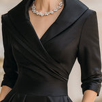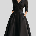 Haljina koja odiše sofisticiranošću i šarmom u svakom detalju. Midi kroj i raskošna suknja daju pokret i gracioznost, dok križeni izrez i 3/4 rukavi naglašavaju ženstvenost s daškom profinjenosti. Svestran i luksuzan komad, savršen za svečane prigode, posebne večere ili bilo koji trenutak kada je potrebna upečatljiva prisutnost.