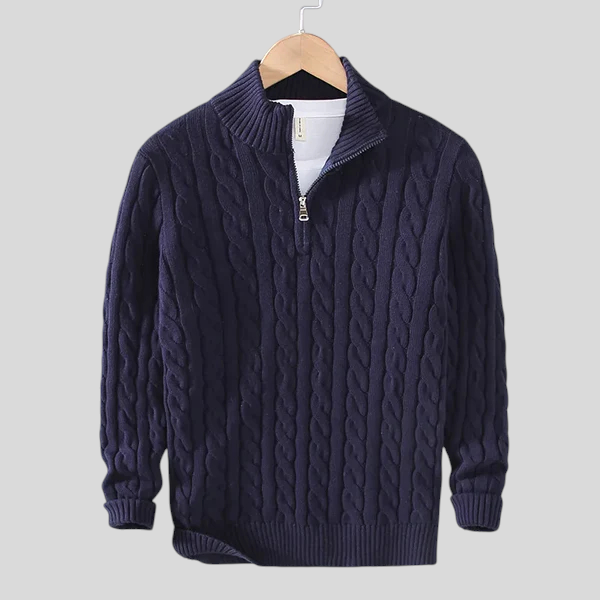 Ovaj pulover dizajniran je za muškarce koji cijene jednostavnu eleganciju. Ima profinjeni pleteni uzorak i praktičan zatvarač koji daje modernu notu, a pritom ostaje udoban i prilagodljiv. Savršen je za svakodnevne kombinacije, opuštene prilike ili trenutke kada želite izgledati dobro bez puno truda.