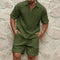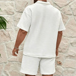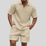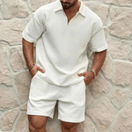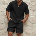 Bilo na plaži, u gradu ili tijekom opuštajućih trenutaka kod kuće – ovaj muški set od prozračne majice i udobnih kratkih hlača tvoj je savršeni suputnik za tople dane. Moderan, strukturirani materijal osigurava jedinstven izgled i ovaj outfit čini pravim must-have komadom.