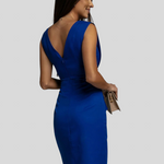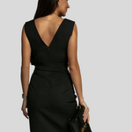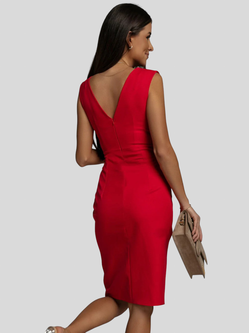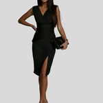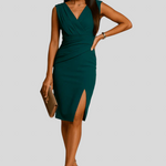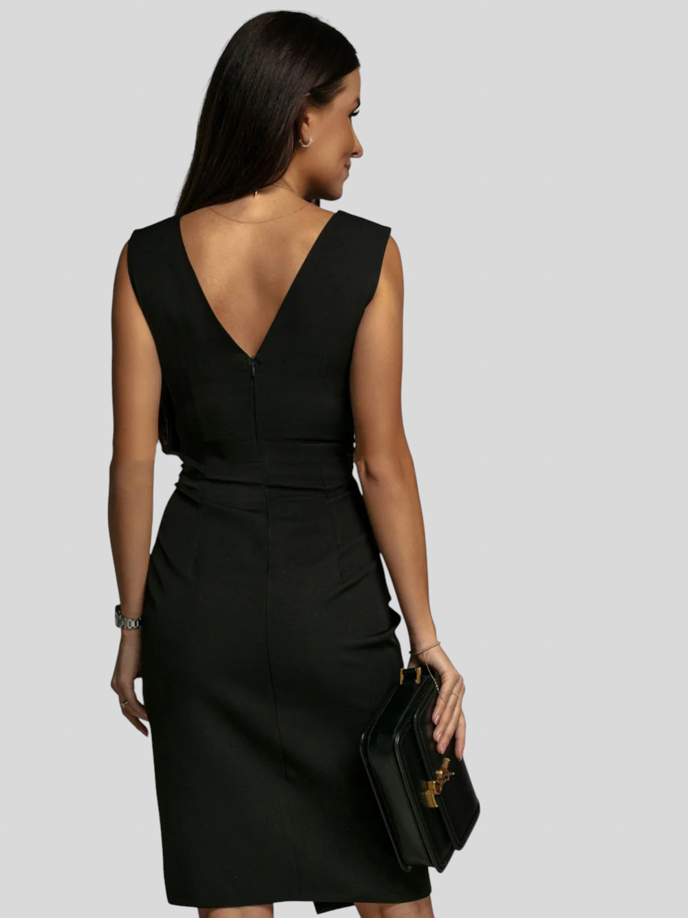 Elegantni detalji – razrađeni dekolte i bočni prorez koji dodaju dozu sofisticiranosti.