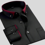 Košulja koja spaja sofisticiranost i moderan stil. Kontrastni detalji na ovratniku i manšetama daju poseban pečat, čineći je savršenim izborom za posebne prilike ili za podizanje svakodnevnog izgleda.