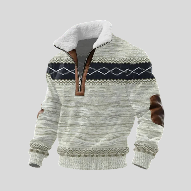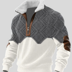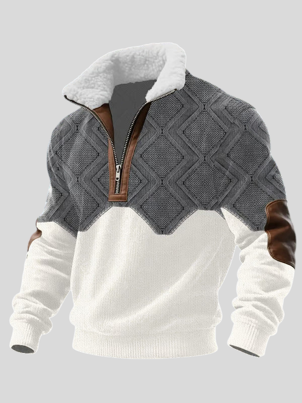 Ovaj pulover spaja vrhunsku udobnost i moderan dizajn. Topla unutarnja podstava pruža ugodan osjećaj i odličnu izolaciju tijekom hladnih dana. Gornji dio s teksturiranim geometrijskim uzorkom daje karakter i ističe stil, dok posebni detalji na patentnom zatvaraču i rukavima dodaju dozu profinjenosti. Savršen izbor za muškarce koji žele kombinirati praktičnost i elegantan izgled.