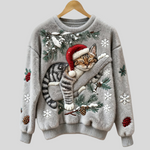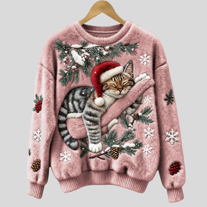 Božićna Majica S Mačkom U Reljefu – Blagdanski Ugođaj Uz Maksimalnu Udobnost
