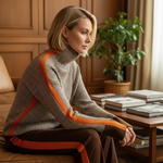 Povećajte svoj ormar ovim upečatljivim turtleneckom u riblju kost, dizajniranim za one koji cijene udobnost i profinjenost. Suptilni teksturirani uzorak nadopunjuje hrabri detalj pruge, stvarajući jedinstvenu ravnotežu između klasičnog i suvremenog. Savršeno se kombinira s krojenim hlačama ili opuštenim trapericama, ovaj svestrani komad se besprijekorno prilagođava svakoj prilici.