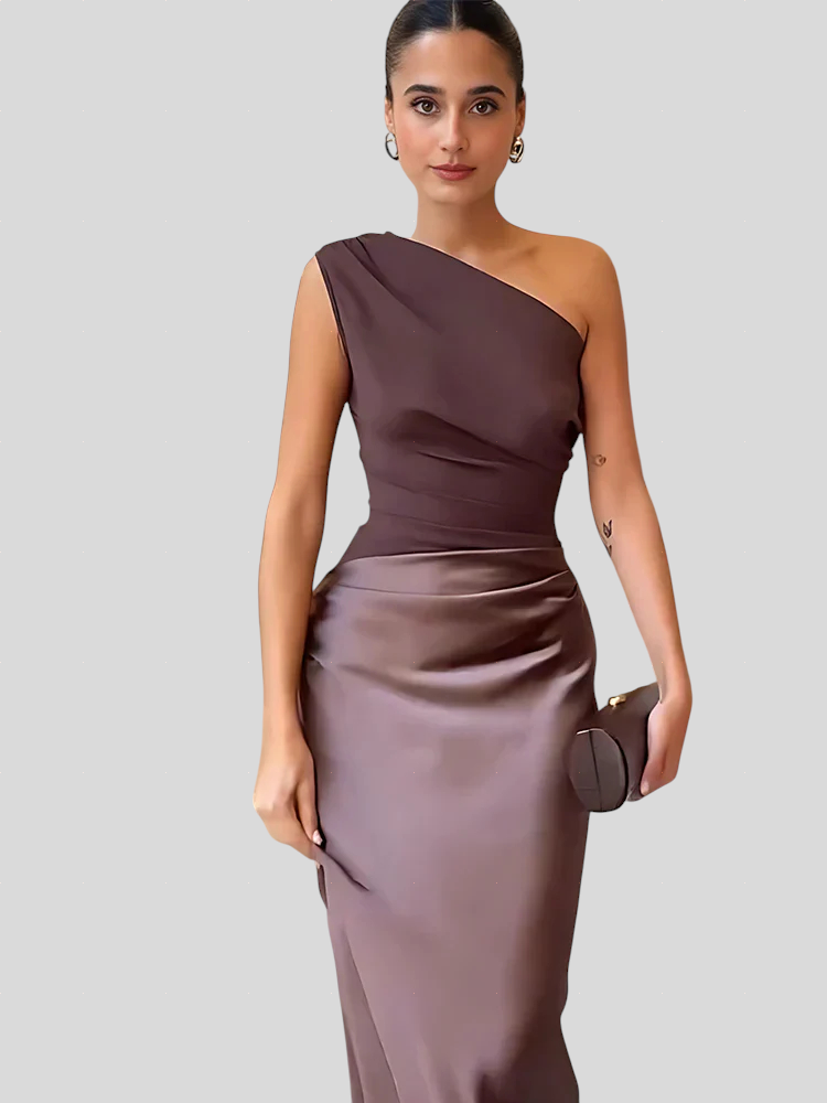 Amber – Saten Haljina Na Jedno Rame, Maxi Duljine