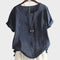 Ova bluza donosi savršen balans između ležernosti i elegancije. Asimetrični raspored gumba daje joj moderan i poseban izgled, dok lagani materijal osigurava prozračnost i udobnost tijekom cijelog dana. Idealna je za svakodnevne kombinacije, ali i za posebne prilike kada želite izgledati drugačije i sofisticirano.