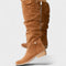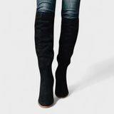 Ove visoke čizme donose urbani šik i udobnost u jednom koraku. Mekano, lagano gornjište s elegantnim naborima prianja uz nogu i pruža opušten, sofisticiran izgled. Bočni patentni zatvarač omogućuje brzo obuvanje, dok niska blok peta nudi stabilnost za cjelodnevno nošenje. Suptilni detalji poput ukrasne kopčice daju dozu profinjenosti koja se lako kombinira s haljinama, suknjama ili trapericama. Savršene za posao, kavu u gradu ili večernji izlazak.