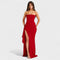 Večernja Haljina Efekt Impakt napravljena je za one koji žele ostaviti trag na svakom događaju. S dizajnom bez naramenica, uskim krojem i strateškim nabiranjem, naglašava obline s sofisticiranošću. Duboki prorez uz lepršavu repnu stvara pokret i stav u svakom koraku. Idealna za posebne prigode gdje su elegancija i glamur obavezni.