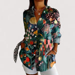 Ova bluza je pravi mamac za oči! Svojim šarenim i umjetničkim printom unosi razigrani i jedinstveni izraz u vašu garderobu. Udoban kroj i prozračan materijal čine je idealnom za ležerne i elegantne prigode.
