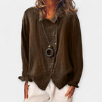 Izrađeno od lagane mješavine pamuka i lana za udobnost i stil bez napora. S opuštenim H-linijom i dugim rukavima, idealno je za proljetne i ljetne dane. Kombinirajte ga s tajicama, trapericama ili ga nosite samostalno za bezbrižan, ali dotjeran izgled.