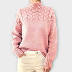 Ženski pleteni pulover kombinira bezvremensku eleganciju s maksimalnom udobnošću. Strukturalni pleteni dizajn čini ga zaista impresivnim – idealnim za svakodnevicu, ured ili opuštene trenutke. Udoban visoki ovratnik i dugi rukavi pružaju ugodnu toplinu, dok opušteni kroj omogućava slobodu pokreta.