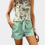 Obnovite svoju garderobu s ovim svijetlim i svježim setom, idealnim za tople proljetne i ljetne dane. Halter top nudi moderni kroj koji ističe ramena, dok odgovarajuće kratke hlače s pojasom donose stil i udobnost za vaše svakodnevne izlaske.