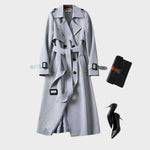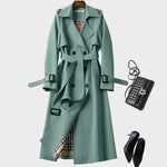 Klasičan dvoredni kroj s remenom u struku, ramenim epoletama i remenčićima na manšetama. Čistih linija i profinjenih detalja, leprša pri hodu i lako se stilizira uz poslovne i casual kombinacije. Dužina ispod koljena daje dozu elegancije, a kvalitetna tkanina lijepo drži formu sezonama.