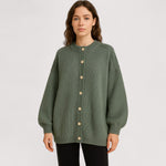 Dizajniran za žene koje spajaju udobnost s gracioznošću, ovaj kardigan ujedinjuje meku teksturu s bezvremenskom elegancijom. Njegova opuštena silueta i profinjeni detalji daju šarm svakoj odjevnoj kombinaciji. Savršen je za slojevito oblačenje i bez napora podiže svakodnevni stil.