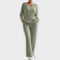 S rebrastim dizajnom, dugom majicom s V-izrezom i širokim hlačama, ovaj set je savršen za opuštene trenutke kod kuće ili za ležeran i stylish izgled tijekom tvojih izleta.