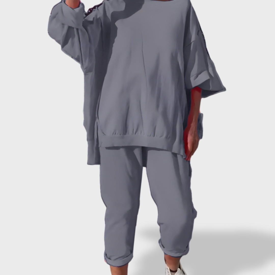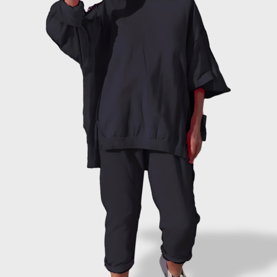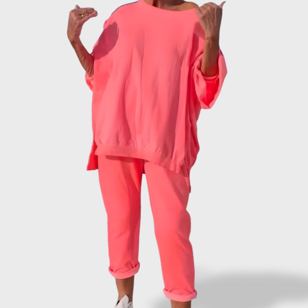 Ema™ | Prozračan i lagan komplet savršen je izbor za one koji traže udobnost i stil tijekom toplih dana. Sastavljen od komada lepršavog kroja i prozračne tkanine, ovaj komplet pruža slobodu pokreta i svježinu cijeli dan.