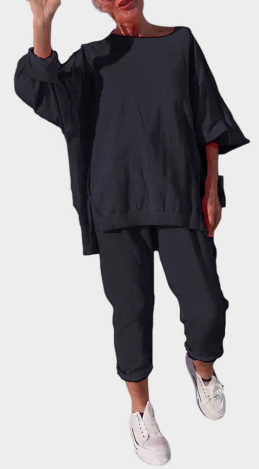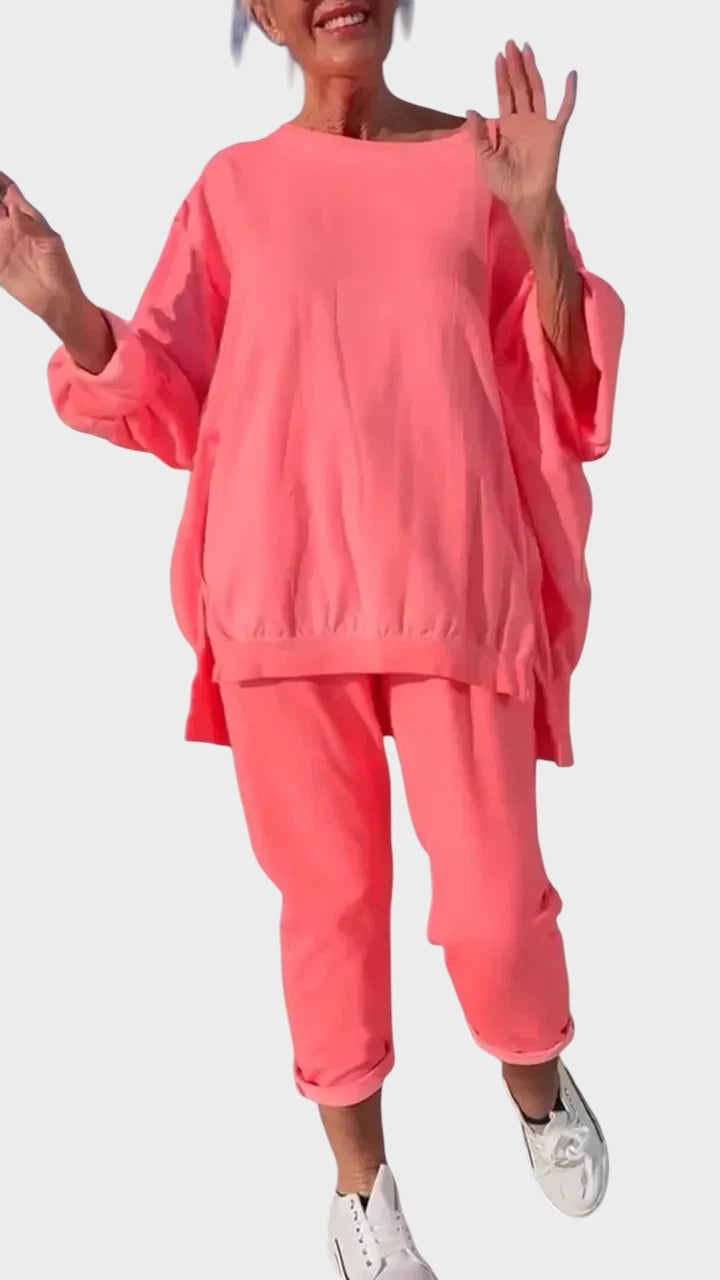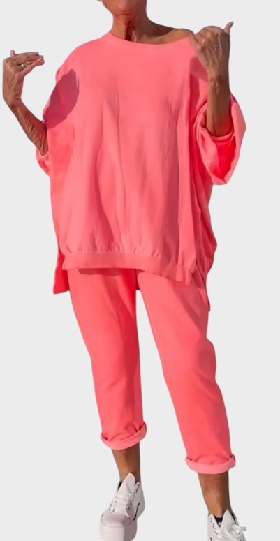 Ovaj komplet idealan je izbor za one koji žele spojiti praktičnost i modernost u jednom izgledu. S opuštenim dizajnom i lepršavim krojem, pruža slobodu kretanja i moderan izgled, savršen za slobodno vrijeme ili neformalne izlaske. Višenamjenski komad koji bez napora spaja udobnost i stil.