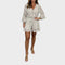 Boho Set je dvodijelna kombinacija koja spaja lakoću i stil. Lepršava bluzica s V-izrezom i blago zvonastim rukavima uparena je s kratkim hlačama s elastičnim strukom i valovitim rubom. Prozračna, teksturirana tkanina lijepo pada i kreće se s vama, dok kroj naglašava struk i izdužuje siluetu. Savršen za grad, putovanja i večernje izlaske—instant outfit bez truda.