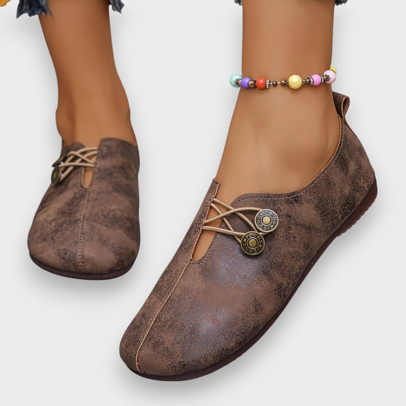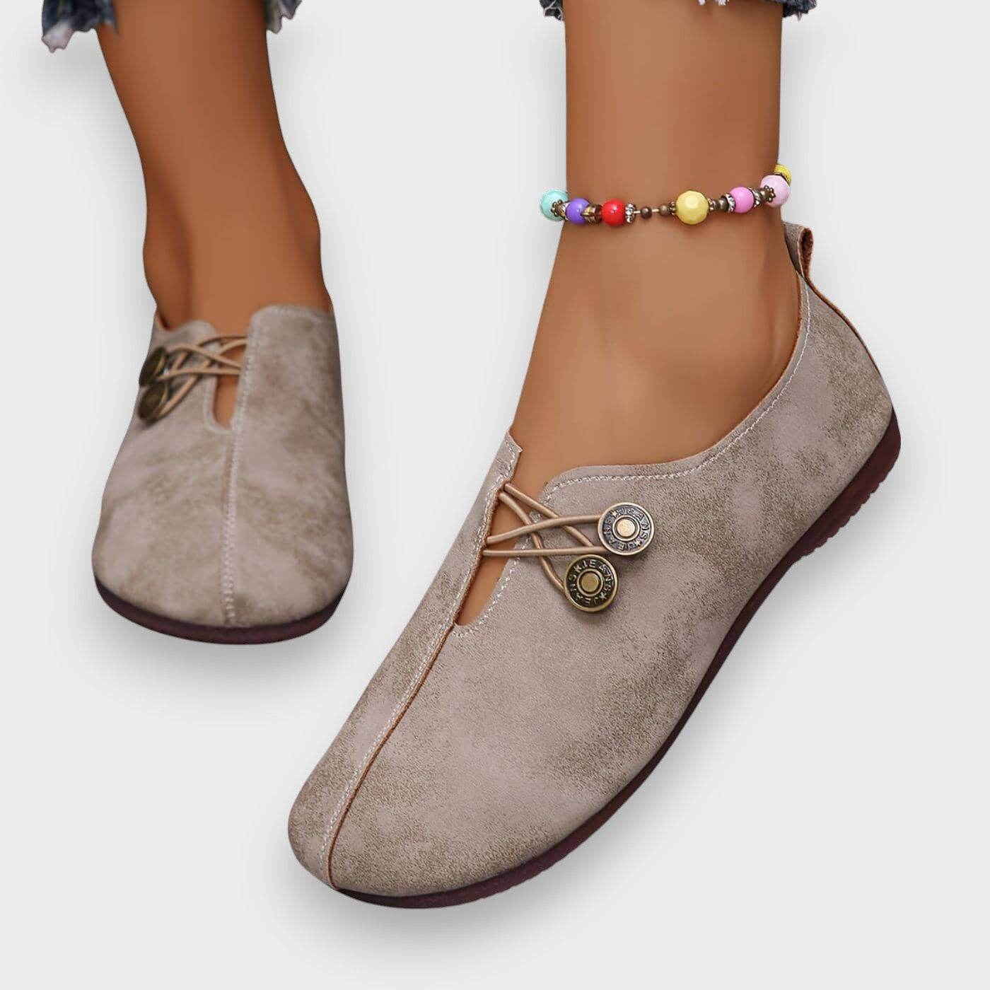 - Sigurno se prilagođava bez stezanja: Elastično dugme koje drži stopalo na mjestu bez trljanja.