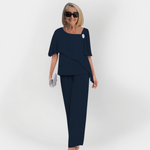 Naš omiljeni set predstavlja savršen izbor za elegantne izglede s udobnošću i stilom – idealan za žene koje žele osjećati sigurnost u svakoj prilici. Moderni dizajn s asimetričnom bluzom i ravnim hlačama stvara bezvremenski izgled koji odgovara svim dobnim skupinama.