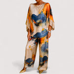 Ovaj dvodijelni komplet dizajniran je za modernu ženu koja želi privući pažnju. Nudi stil bez napora i slobodu kretanja zahvaljujući luksuznim, prozračnim materijalima – savršen od dana do večeri.