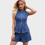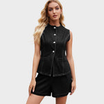 Orly - Elegantni komplet bezrukavnog prsluka s gumbima i kratkih hlača