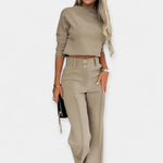 Moderni set koji isijava ženstvenost i udobnost. Kombinira stil i funkcionalnost, idealan za ljetne šetnje, izlazak s prijateljicama ili opuštene elegantne izglede.