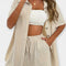 Ovaj jednobojni ženski set kombinira jednostavnost i moderni stil, idealan za ljetne izglede s nenametljivom elegancijom. Košulja dodaje ležernu sofisticiranost, dok kratke hlače pružaju udobnost i slobodu kretanja.
