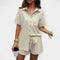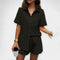 Ovaj set od dva dijela kombinira svakodnevnu udobnost i bezvremenski stil. Košulja s srednjim ovratnikom i gumbima daje sofisticirani izgled, dok elastični šorts s vezicom nudi fleksibilnost i opuštenu prilagodbu – idealno za vruće dane sezone.