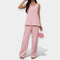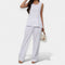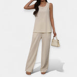 Idealno za vruće dane, ovaj set nudi jednostavnu udobnost i minimalističku estetiku. Top bez rukava suptilno obavija tijelo, dok široke hlače dodaju prozračnost i eleganciju vašem svakodnevnom izgledu.