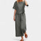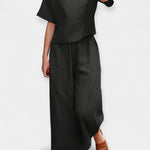 Savršen set za ljetne izglede s nenametljivom elegancijom. Zračna majica s kratkim rukavima savršeno se kombinira s udobnim hlačama opuštenog kroja, pružajući udobnost, stil i svježinu tijekom cijelog dana. Idealno za gradske lookove, odmore ili opuštene šetnje.
