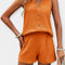 Ovaj bezvremenski elegantan set sastoji se od majice s V izrezom i dugmadi, u kombinaciji s udobnim kratkim hlačama, idealnim za vaše proljetne i ljetne izglede. Čista boja i jednostavna linija čine ga svestranim i ženstvenim za svaku priliku.