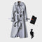 Klasičan dvoredni kroj s remenom u struku, ramenim epoletama i remenčićima na manšetama. Čistih linija i profinjenih detalja, leprša pri hodu i lako se stilizira uz poslovne i casual kombinacije. Dužina ispod koljena daje dozu elegancije, a kvalitetna tkanina lijepo drži formu sezonama.